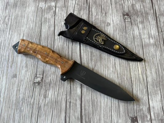 Tatical knife 6", Phosphated Carbon Steel Blade, FullTang Wood handle, 300mm, CS06-010