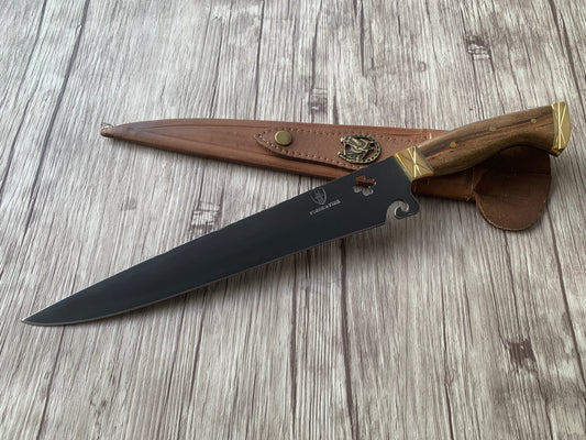 Clover Leaf BBQ Knife, 10" Carbon Steel Blade, Wood Handle, 410mm, CS10-011