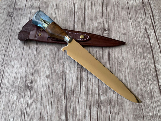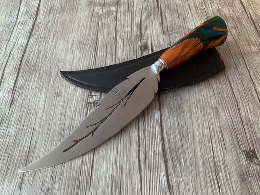 Leaf Knife, 8" Stainless Steel Blade, Hybrid Wood & Resin Handle, 360mm, SS08-022