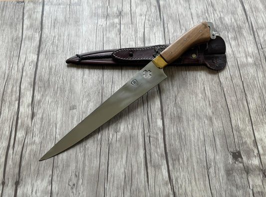 Clover Leaf BBQ Knife, 10" Carbon Steel Blade, Wood Handle, FullTang 410mm, SS10-011
